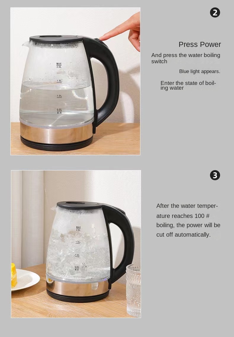 High boron glass multifunctional kettle with automatic power-off LED light and electric kettle